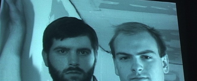 ACTUA 1 constructs an event that both happened and did not. An exercise in futility and concentration, the piece is named after Actua One, a lost film from the May ’68 uprisings. Performers pace restlessly in the main gallery, as they spout slogans for a missing revolution. Actors propel themselves out of stagnation and boredom through complex object procedures and mental tasks. Speeches, music, activities, and radio are projected into the gallery’s back room via video cameras and microphones, where the audience can watch from a comfortable distance. The action is both intimately proximal and telepresent. ACTUA 1: an absent performance for five performers—the soldiers from Godard’s “Les Carabiniers” performing Allan Kaprow on public access.