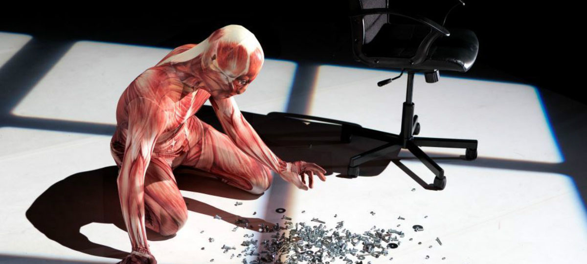 In Affordable Solution for Better Living, visual artist Théo Mercier and choreographer Steven Michel break the taboos of a society saddled with healthy living, placing a Kallax–a most peculiar totem–in the middle of a spotless space. The flagship shelf unit by the giant company Ikea, less famous than the Billy but more sizable and refined, epitomizes “beauty for all”. By transposing a commercial system to a choreographic piece, Affordable Solution for Better Living aims to interrogate the commodified body, the prescribed lifestyle and the illusion of freedom touted by the major industrial powers. How does the corporate world stage the consumer’s body? Is the household the only insubmissive space or in fact an umpteenth incarnation staged by a major brand? In three acts, Affordable Solution for Better Living debunks the model and unfurls the convictions and doubts of a nearly perfect and polished man. A centaur, half man and half furniture, absurdly builds his own customized interior, unique and yet like all the others. In crescendo mode, man and space merge beautifully, the smooth, harmonious and chilling world cracks and bends, exposing its dark side as well as its humanity. Aren’t people likely to self-destruct from within as they strive excessively to tend to their interior?