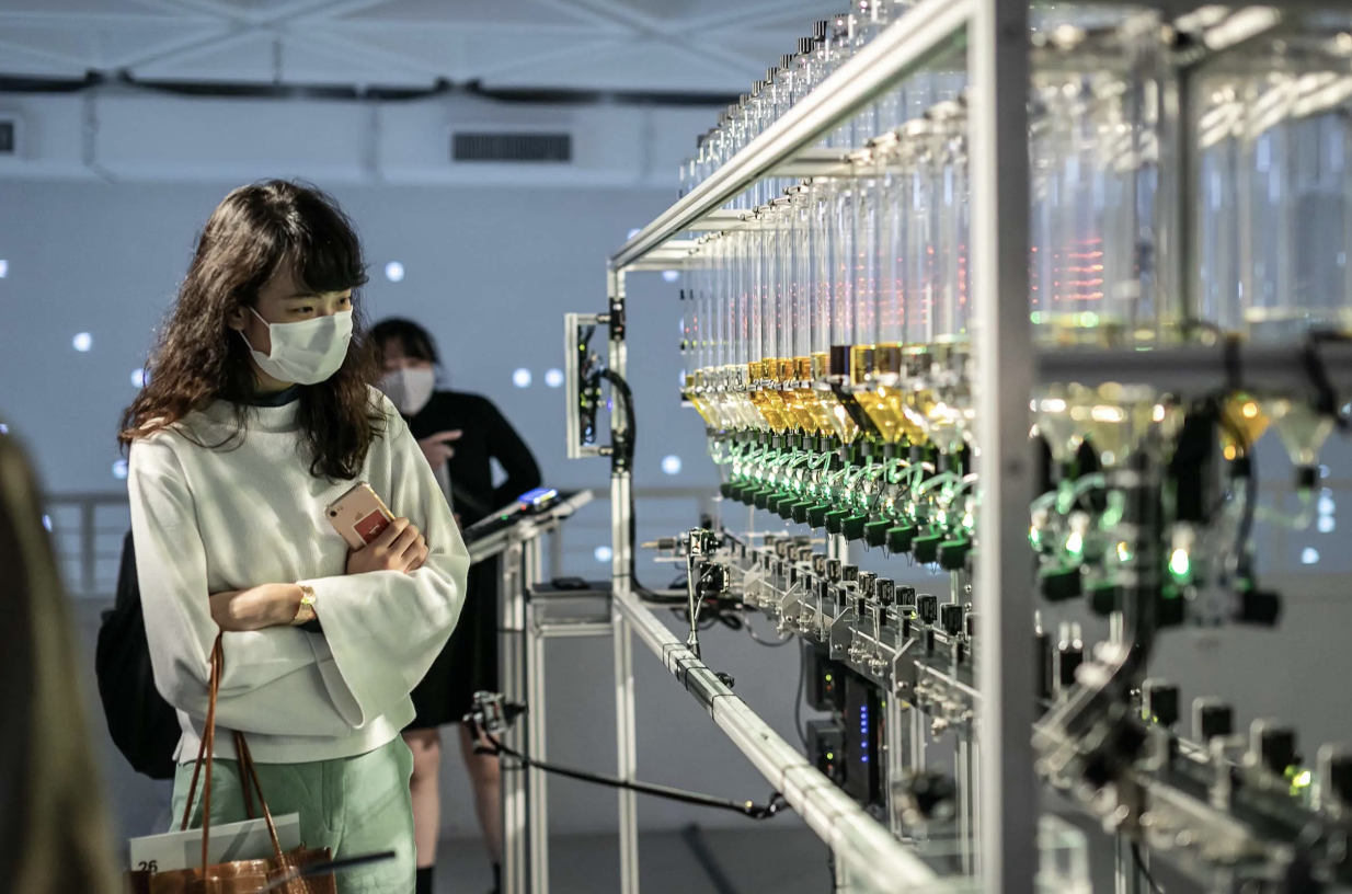 Algorithmic Perfumery was conceived as a participatory installation that addresses the relationship between man and machine and thus confronts us with ourselves. Triggered by the question 'what if every human could create their own scent', it has traveled to art and design festivals across the globe to engage and learn from a wide range of audiences.