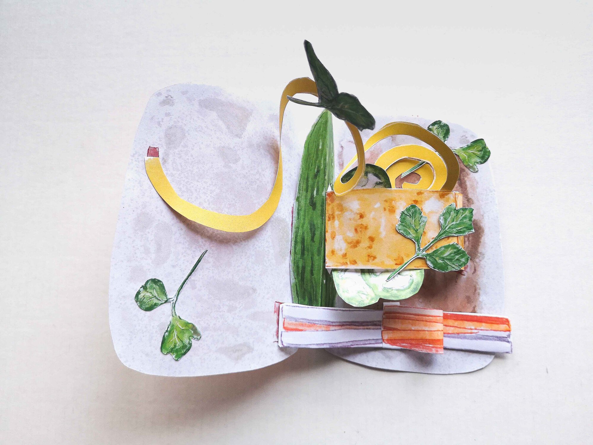 This event is a pop-up book workshop by Sherry Muyuan He where people learn to assemble a paper Bánh mì. The ingredients will be printed on paper and ready at the workshop. It will take about 20 minutes for each participant to complete a pop-up Bánh mì.