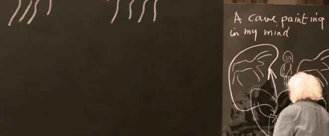 A silent, communal matrix of individuals “dreaming the real” imprints a landscape of marks and meaning on the surfaces of blackboards through a series of rehearsed patterns. Rising thoughts, visual thinking, and sensual perception form a choreography relating to exchange, sedimentation, erosion and demise as audience members bear witness to the unfolding. You may sit, you may talk, you may read, you may walk throughout the performance.