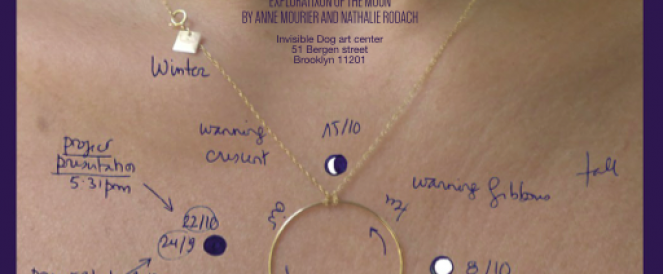 The Moon is a metaphor for the feminine within us, channel of the mystical, of dreams and of belief systems, she is, with the Sun, a vehicle of human mythology. Invisible, her influence informs our lives. Artists Anne Mourier and Nathalie Rodach agreed to embark upon a project spanning a full lunar cycle in order to question feminine archetypes and notions of alterity. During those 29 days, they will create works of art out of their vision. They have invited Sheba Remy Kharbanda, filmmaker and metaphysician, to join them on this journey. The project commenced September 24th 2014 at 2:13 am upon the new Moon and will be presented at the Invisible Dog Art Center on October 22nd 2014 from 5:31pm to 9:37pm, before the commencement of the next cycle. Anne, Nathalie and Remy invite you to follow their steps. From one Moon to the other listen to your emotions and let your intuition carry you away. Come to witness the result of the artist’s research and enrich them by sharing yours.