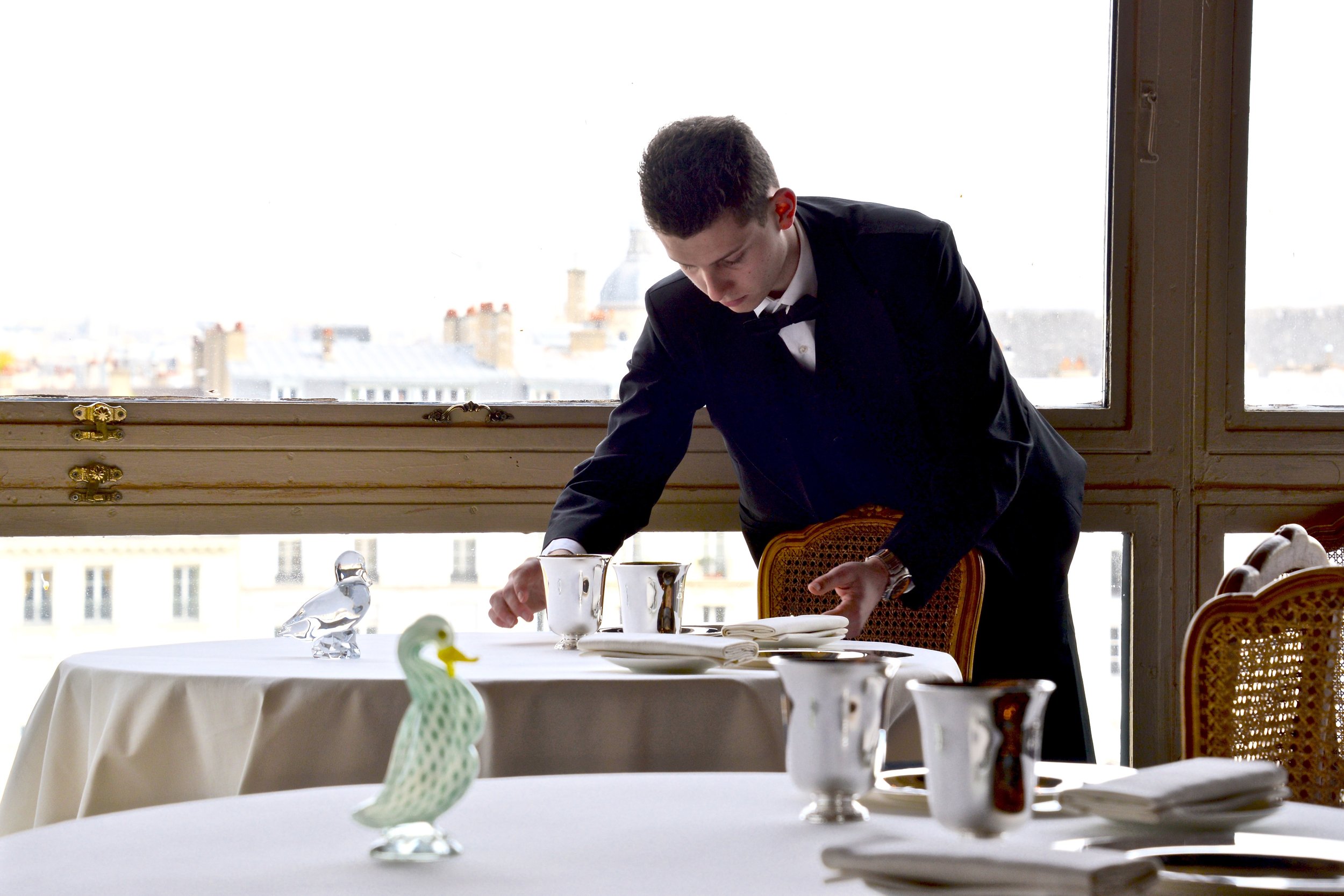A restaurant is like a theater; it has a backstage, actors, dancers, staging, even its own music. A great restaurant is a space that surpasses the everyday: governed by its own rhythms and codes, populated by devotees. Here it is dominated by the figure and the voice of a father who, having once dreamed of a career on the stage, instead built his life around his beloved Tower, the restaurant Tour d’Argent in Paris.