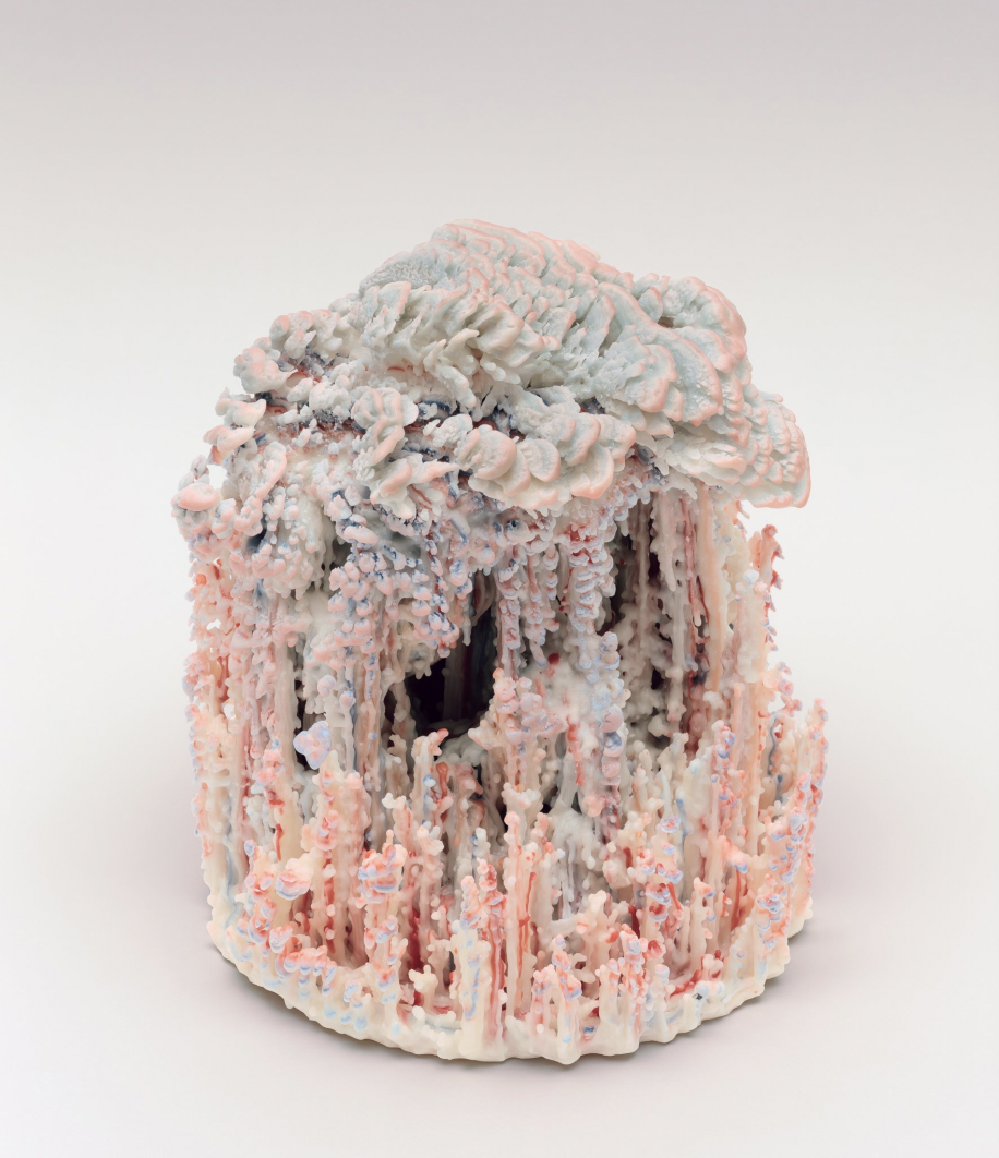 Camille de Galbert’s work revels in form, volume and texture. She uses repetitive and accumulative mark-making as a way to explore the structures and shapes of organic matter. Using wax, latex or silicone some shapes evoke the sedimentation of time, some feel like smooth skins, others can seem like distorted bodies.