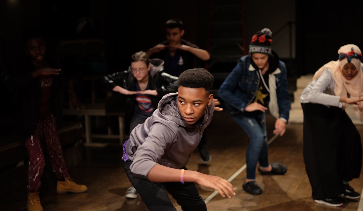 In Manmade Earth, eight teenagers from the Congo, Egypt, Malaysia, Somalia, Syria, Tanzania, and the United States—each with a unique path into this country—come together to create a new landscape on stage. With an abundance of materials, including cardboard, rope, buckets, and wood, Manmade Earth binds the audience and performers in an experiment of communal construction.