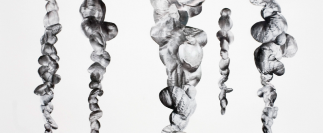Mathilde Roussel’s sculptures and drawings are conceived like living organisms. During her creation process, Roussel progressively gives up control over the materials she uses by letting them find their own form of existence. She selects mediums that are both fragile and resistant: paper pulp, graphite powder, incised rubber or plants. This choice allows her to explore unstable forms and observe their continuous mutation.