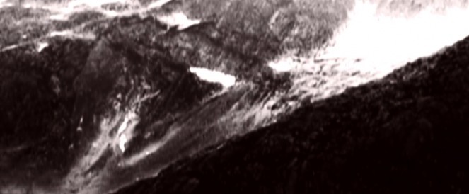 The imagery of Melting Ground consists of an uninterrupted single handheld take while flying in a helicopter over Mendenhall Glacier in Juneau, Alaska in August 2005. Garet submitted the footage to rigorous processes of digital manipulation, altering the takes natural condition, light, motion, rhythm, and duration. The audio was specifically composed for the imagery. Asher’s sonic construction commenced by making recordings with microphones placed inside the body of a piano, very close to the hammers, and emphasizing not only the tactile qualities of the instrument but also the timber and sensorial richness of its sound. Additionally, Asher focused on layering and synchronizingloops of the piano’s sounds to create irregular structures in which new melodic phrases would arise through chance.