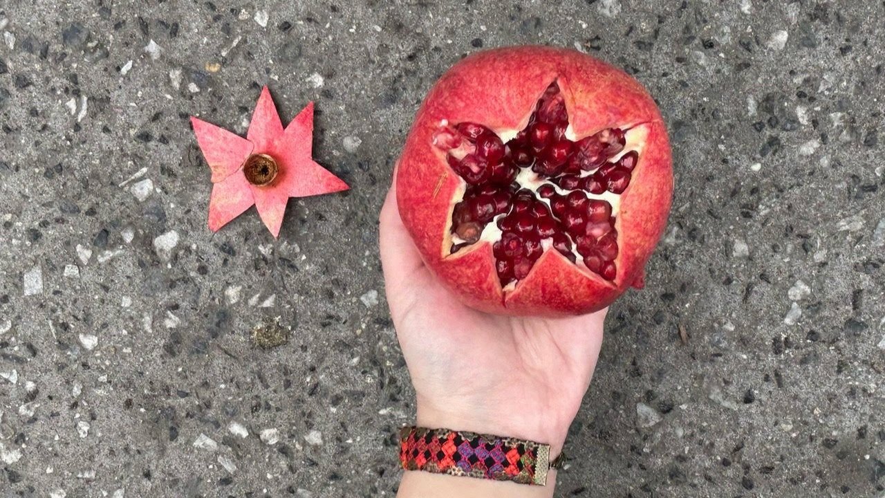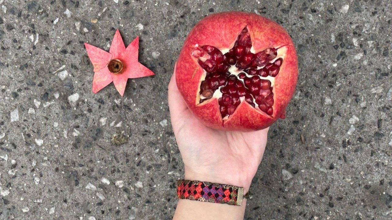 Since moving to New York, I’ve deeply missed my father’s lovingly peeled pomegranates. Pomegranates have always been a wondrous muse to explore. Enjoying them is brief and momentary, but the process of peeling them is laborious. The pomegranate seeds are fleeting, red like flesh. Although the seeds don’t have much flesh, the aftertaste lingers for a long time. When opportunities to gather are scarce, we still find time to peel pomegranates together. We invite you to join as we learn to peel away and serve pomegranates to celebrate the opening of this exhibition
