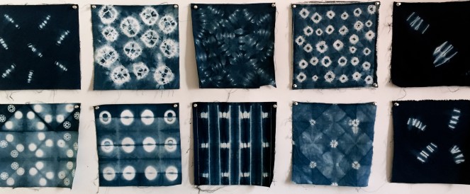 Craftsman Calvin Stalvig will facilitate shibori indigo dying in the Glass House of Invisible Dog. Using methods of binding, pleating, knotting, stitching, clamping and wrapping, participants will prepare a small table runner to take home with them after dying it in an indigo bath. Dynamic and surprising, no two shibori pieces are ever the same.