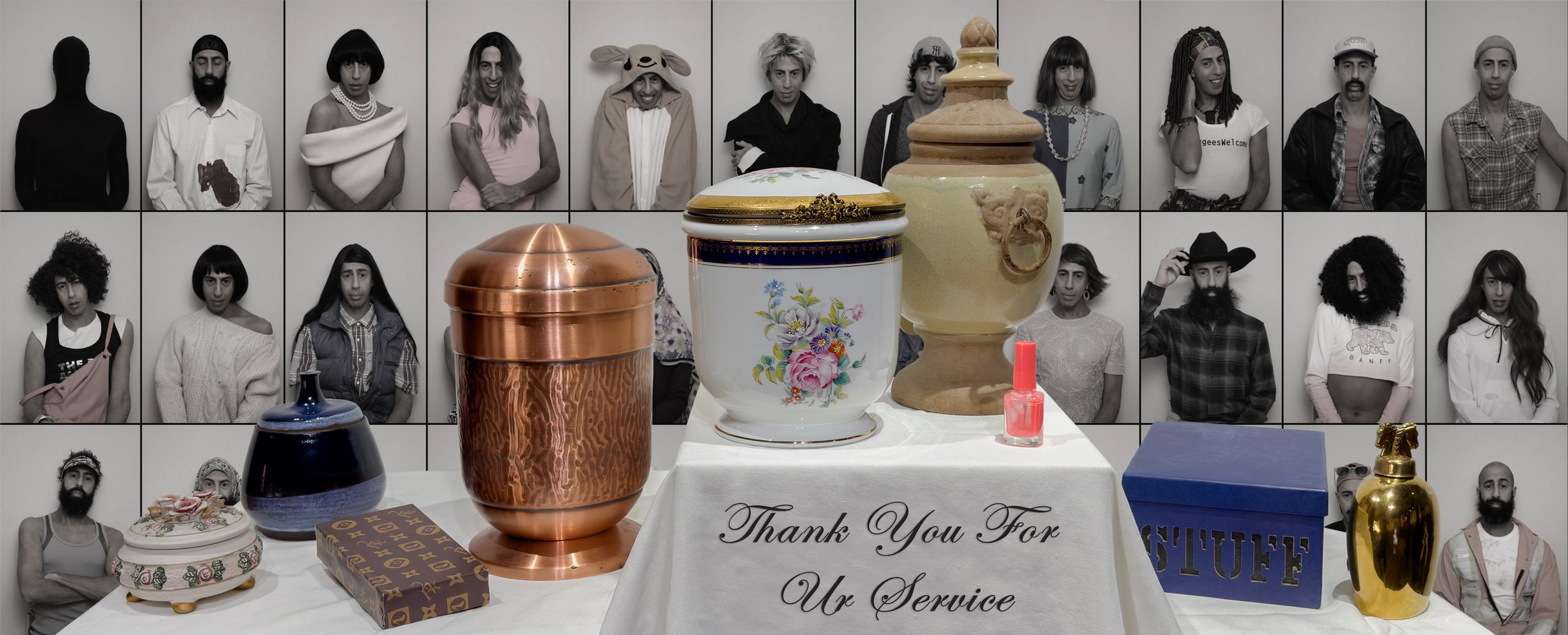 This multidisciplinary series (visual art, video and installation) stems from a traumatizing experience during a performance in 2021. 2Fik questions his relationship with his characters, 100 of them that he developed since the beginning of his career. After 20 years of practice as the photographer, the model and the creator of all his works, these questions awakened a deep sense of grief.