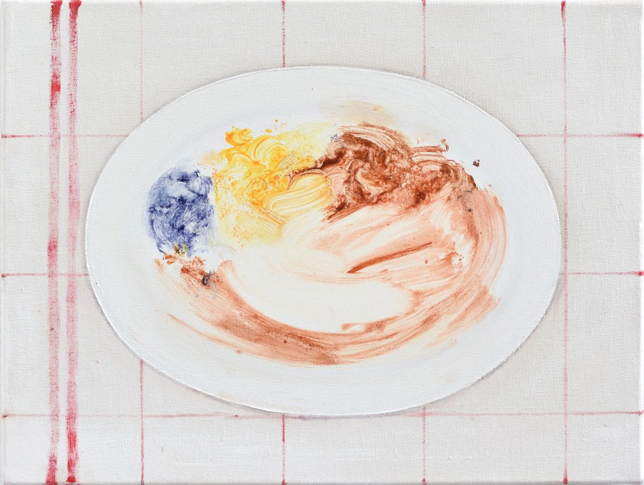 At all costs, never lock yourself into a style. Always subordinate the painting to the subject. To make every detail an obsession. Finally, to avoid boredom. There are the watchwords that guide Raphaël-Bachir Osman’s pictural work. His series on the theme of delicacies honours pastries: éclair with velvety icing, generous chocolate biscotti on a gingham tablecloth, embossed mille-feuille toppings worked in series with a piping bag, etc. Since the subject indicates its technical treatments, the oil paint must be smeared on the canvas as one spreads chocolate on the toast. Through a claimed brazenness, his flat works absorb the codes of restoration and the iconography of the still life to better detach themselves from them. The artist strives to nestle finesse in excess. The extreme slowness of the work is put to the service of hyper-objectivity of the representation which laughs at the art world whose absurdities it insidiously reveals. (Text by Fanny Trussard, 2022)