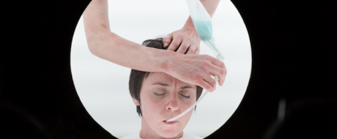 A small group of audience members surveils a dancer who is simultaneously: 1) watching reenactments of scenes from 2001: A Space Odyssey, 2) participating in a mash-up of some of the most canonical social science experiments of the last 50 years. Occasionally, an eight-foot-high wooden wheel assists dancers as they rotate in the sagittal plane with their nose as the axis. Each rotation tests the viability of the constructed environment the dancers inhabit and allows the audience to reconsider the nature of stability. Knee aprons, one-way surveillance glass, Mormon temple rituals, and a wooden bikini help prepare the audience for shifts in perspective and other revelations related to death.