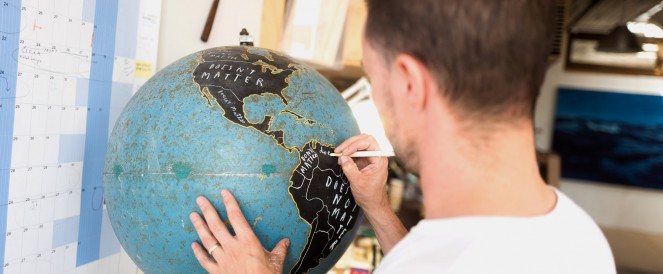 Oliver Jeffers is an artist, book maker and sometimes, somewhat cartographer. He has been making maps inaccurately, to comment on our understanding of the world, for over 25 years. Oliver is originally from Belfast, he now lives and works in Brooklyn, NY.