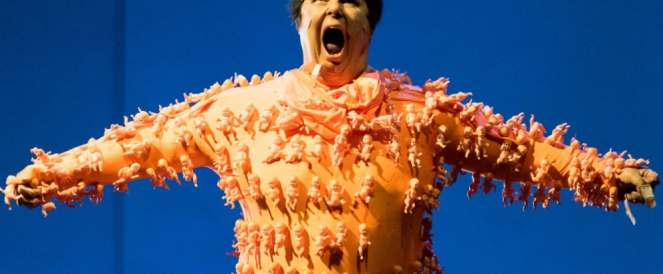“Fearlessly morphing from one creature to the next — one transformation involved an orange bodysuit affixed with the plastic babies, and in another, she was coated in black paint — she exposed her aging body with aplomb. Is there nothing she’s afraid of?” wrote Gia Kourlas (New York Times).